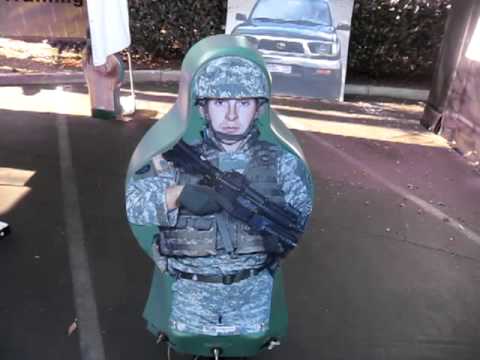 While DefenseReview (DR) was running through the Phoenix RBT Solutions Portable Training Facility mission-configurable shoot house, we got to try out one of ;Tech Valley Technologies' (TVT) sensor-laiden 3D (3-Dimensional) reactive target systems with "Hit Location Technology". It was illuminating. The TVT 3-D reactive targets are actually designed primarily for live-fire tactical shooting/combat shooting training with both rifle and pistol ammunition, but they can also be used with Ultimate Training Munitions Man Marker Round (UTM MMR) force-on-force training ammo, since they will react the same way when getting hit by the much weaker non-lethal MMR rounds. This makes the TVT targets extremely versatile.
