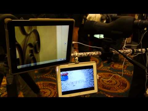 "What we've done, here, David [Crane], is we've adapted our iPad frame with the new iPad to a number of different spotting scopes. We're the first company in the world to now adapt to the Leica APO. We've got Swarovski. Of course we've got the Leupold Mk-4. We've got some lower-end Leupold scopes for your budget buyers. All of our frames will not only take an iPad, we've got the Samsung S3, we've got the new Blackberry Playbook.