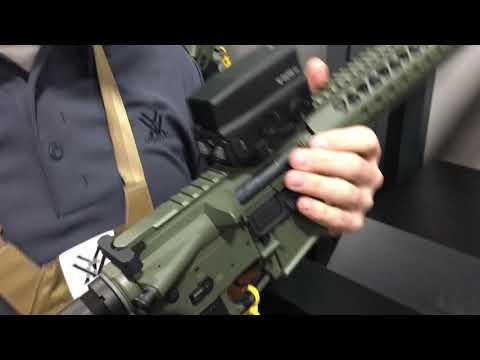 And, as long as we’re on the subject of awesome new Vortex Optics combat optics at SHOT Show 2019, we should probably also discuss the very interesting Vortex Razor AMG UH-1 (Ultimate Holigraphic-1) holographic weapon sight, which is designed for super-fast target acquisition dynamic CQB/CQC (Close Quarters Battle/Close Quarters Combat) engagements with its “incredibly fast EBR-CQB reticle”, unlimited eye relief (yep, it’s “parallax free”), and anti-reflective coatings on the glass optics. The aforementioned Ryan Muckenhirn was kind enough to take DefenseReview (DR) through this one, too, at the Vortex Optics booth.